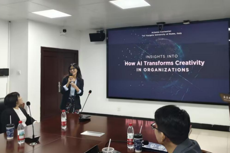 接着Arianna Costantini教授围绕“人工智能对创造力的影响”主题展开介绍,她提到人工智能的迅猛发展正深刻重塑着全球创新生态,其对创造力的影响已成为学术界与产业界关注的焦点,并且系统研讨了人工智能与创造力融合的前沿议题,为理解和驾驭这一增强创造力的新范式提供理论支撑与前瞻视野。