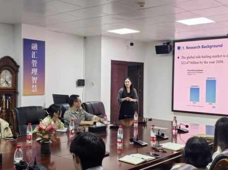 互动交流环节,师生们围绕模型假设的现实适配性、运力共享的成本分摊机制、研究结论在多平台场景下的延伸应用等问题积极提问。陈雅娟老师逐一作出细致解答,以扎实的学术功底和丰富的研究经验与师生展开深度探讨,现场氛围热烈,掌声不断。