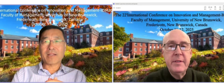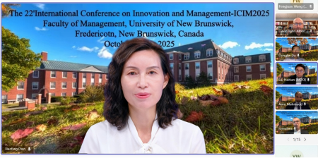 北京时间 10 月 11 日下午七点,第22届创新与管理国际学术会议(ICIM2025)在加拿大纽布伦斯威克大学隆重开幕。作为全球管理科学领域的重要学术盛会,本届会议由纽布伦斯威大学(UNB)承办,采用 “线下 + 云端全球参会” 的混合模式,吸引了来自中国、加拿大、澳大利亚、荷兰、法国、西班牙等世界各地的高水平学者和国内管理学行业专家齐聚一堂。会议以 “数字赋能的创新与管理” 为核心主题,深入探讨了人工智能、大数据、区块链等前沿技术如何重构创新生态与管理范式,充分彰显了学界对数字化转型时代管理变革的前瞻性思考。